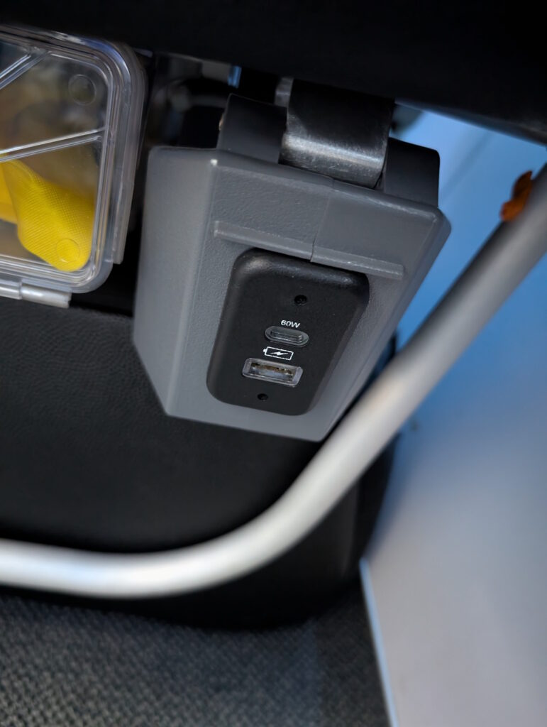 Darüber hinaus lässt sich über die Kabine nicht viel sagen, mit Ausnahme vielleicht der Tatsache, dass British Airways keine Monitore installiert hat (dementsprechend findet auch die Sicherheitseinweisung manuell statt) und dass sich unter den Sitzen USB-Ladeports befinden.