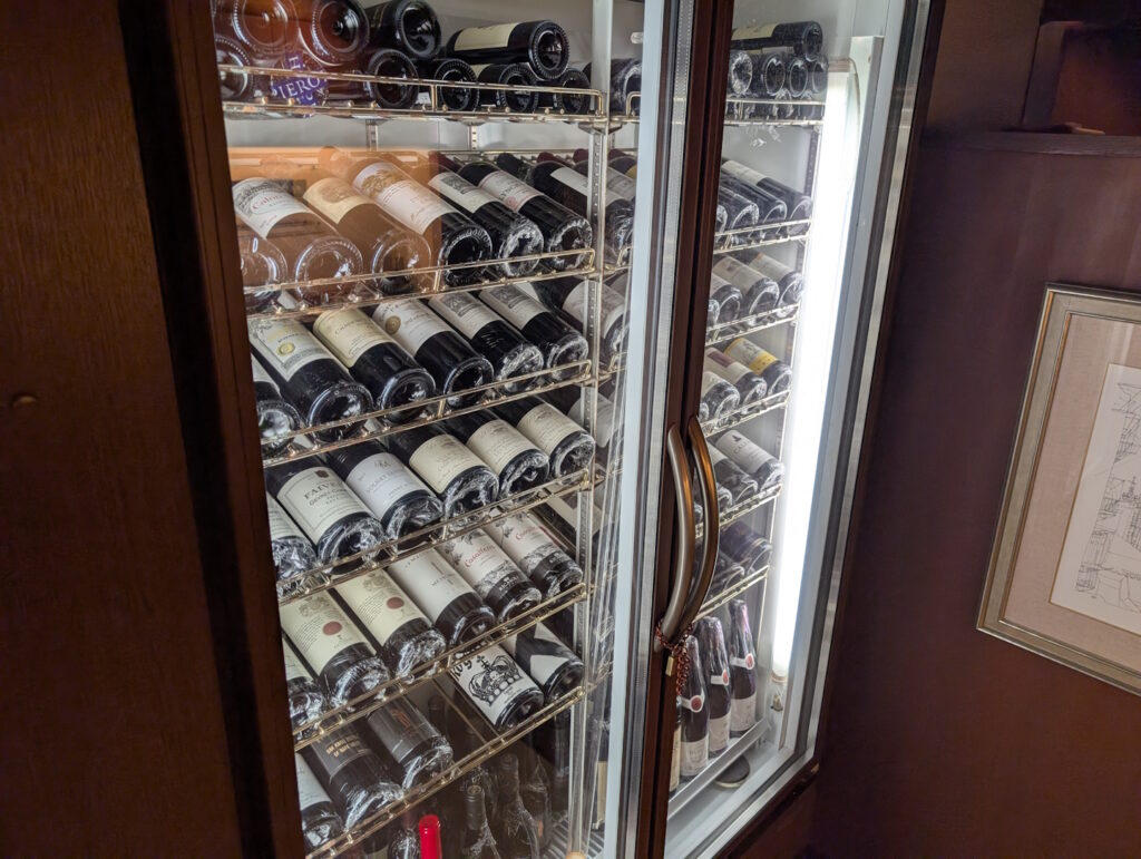 Was Wein angbelangt, hätte man es sich hier auch durchaus sehr gut gehen lassen können, wurden doch in einem Weinkühlschrank in einem der Gänge allerlei prestigeträchtige Weingüter präsentiert – immerhin ist das Tosen Goshobo aber auch im Guide Michelin erwähnt.