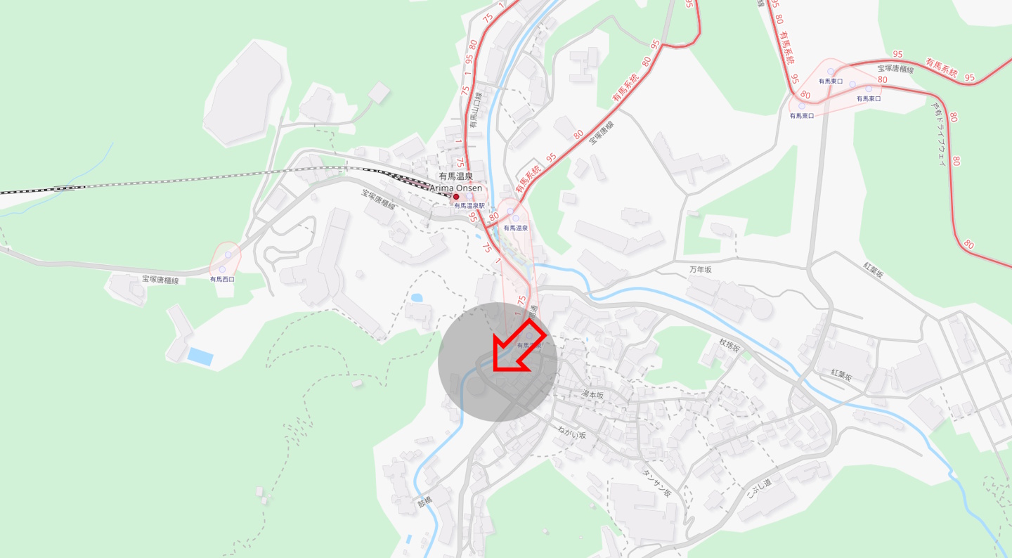 Das (der?) Tosen Goshobo Ryokan liegt inmitten der Ortschaft Arima Onsen, einem Teil der verwaltungstechnisch zu Kobe gehörenden, aus mehreren Dörfern bestehenden Gemeinde Arimacho, mehr oder weniger direkt neben dem Busbahnhof und nur wenige 100m vom Bahnhof des Dorfes entfernt. Da die halbstündlich von Kobe aus verkehrenden Busse bei ihrem Stop am Bahnhof Shin-Kobe (an dem wir angekommen waren) in aller Regel bereits gut gefüllt sind (insbesondere mit größerem Gepäck kann das ein Problem sein, da der Platz im Kofferraum des Busses begrenzt ist), haben wir uns für die etwas kompliziert erscheinende Anreise mit der Bahn entschieden. Hierbei muss vom Bahnhof Shin-Kobe zunächst mit der U-Bahn der Hokoshun Line zur Station Tanigami gefahren und dort in die Regionalzüge der Kobe Dentetsu-Arima Line umgestiegen werden. Diese fahren Arima Onsen jedoch überwiegend nicht direkt an, so dass in Arimagucho noch einmal auf einen separaten Zug für die Stichstrecke nach Arima Onsen umgestiegen werden muss. Was sich zunächst nach erheblichem Aufwand anhört ist jedoch aufgrund der perfekt abgestimmten Fahrpläne und der legendären Zuverlässigkeit der japanischen Bahnen überhaupt kein Problem und zum Preis von 720 JPY (ca. 4,20 EUR) auch nicht teuer.