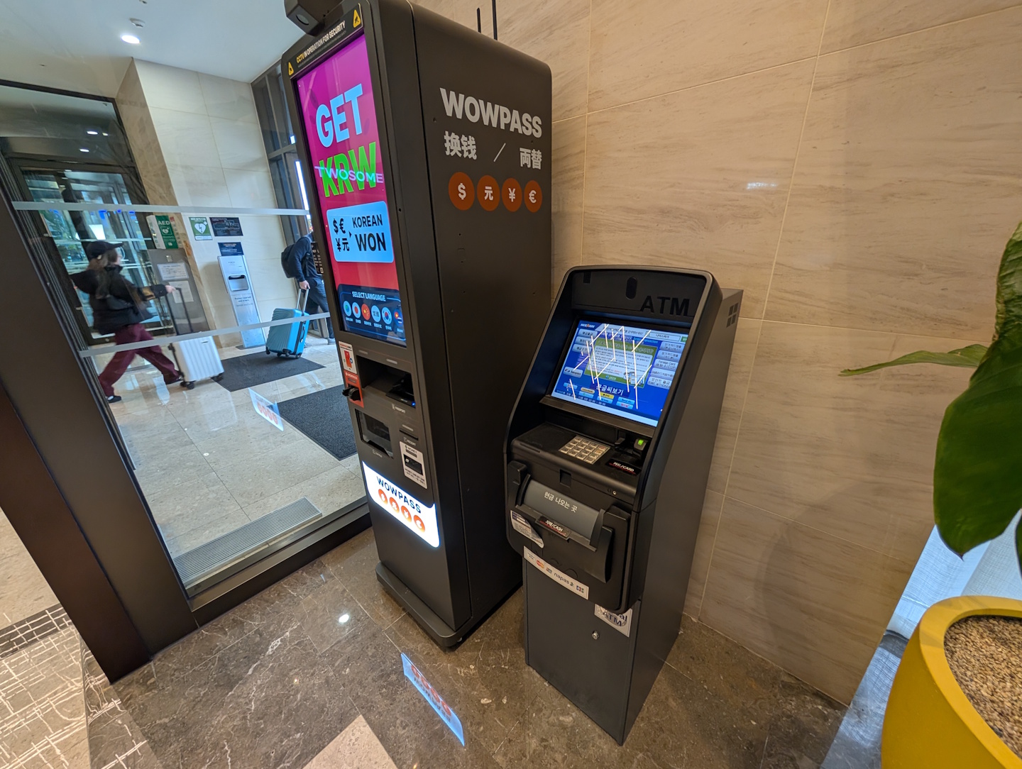 In der Lobby selbst befindet sich auch ein Geldautomat und ein Verkaufsautomat, an dem u.a. internationale eSIMs erhältlich sind. Nicht wundern sollte man sich übrigens bei der GSM-Nutzung in Seoul, denn hier wird Cell Broadcast fast schon exzessiv für die Übermittlung von Zivilschutz-Warnungen verwendet. Solche Meldungen (ausschließlich auf koreanisch) erreichten unsere Telefone täglich, von Warnungen über Keime im Leitungswasser über die Information im Bezug auf eine Demonstration und zu erwartende Verkehrsbehinderungen bis hin zu einer Vermisstenmeldung.