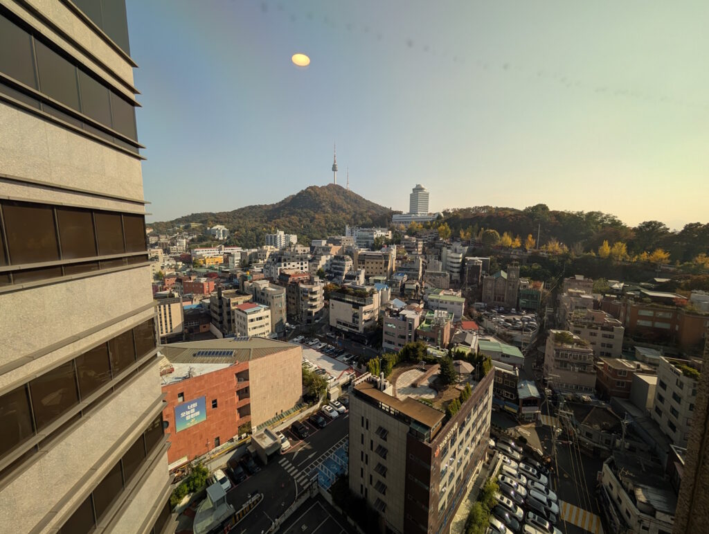 Die Zimmerkorridore präsentieren sich hierbei akzeptabel, aber keineswegs modern (man bedenke, dass IHG dieses Hotel nur übernommen, nicht aber neu gebaut oder grundlegend saniert hat). Die von den Korridoren abgehenden Zimmer blicken hierbei entweder auf die Straßenseite oder auf den Hausberg Namsan mit seinem charakteristischen Fernsehturm.
