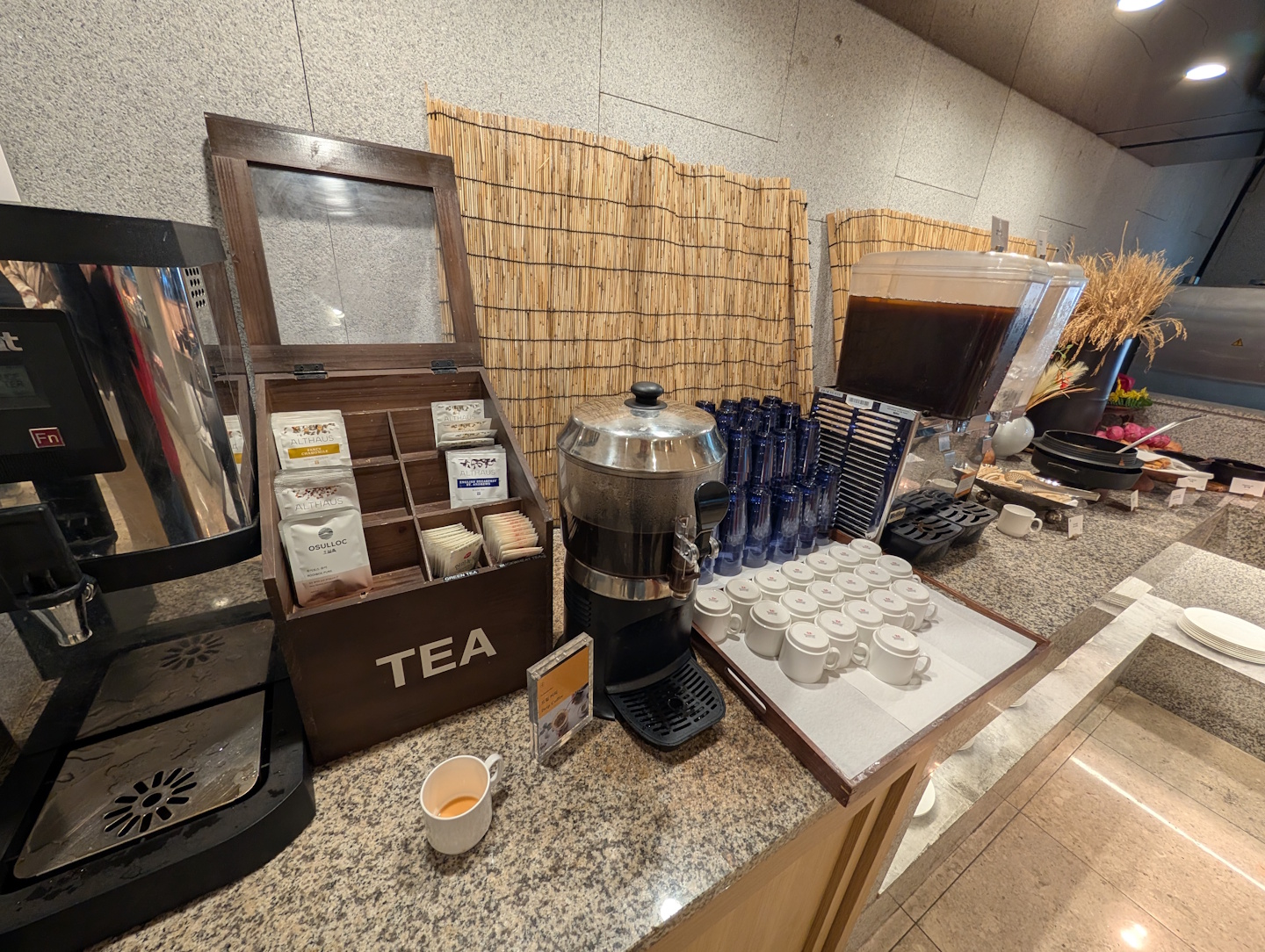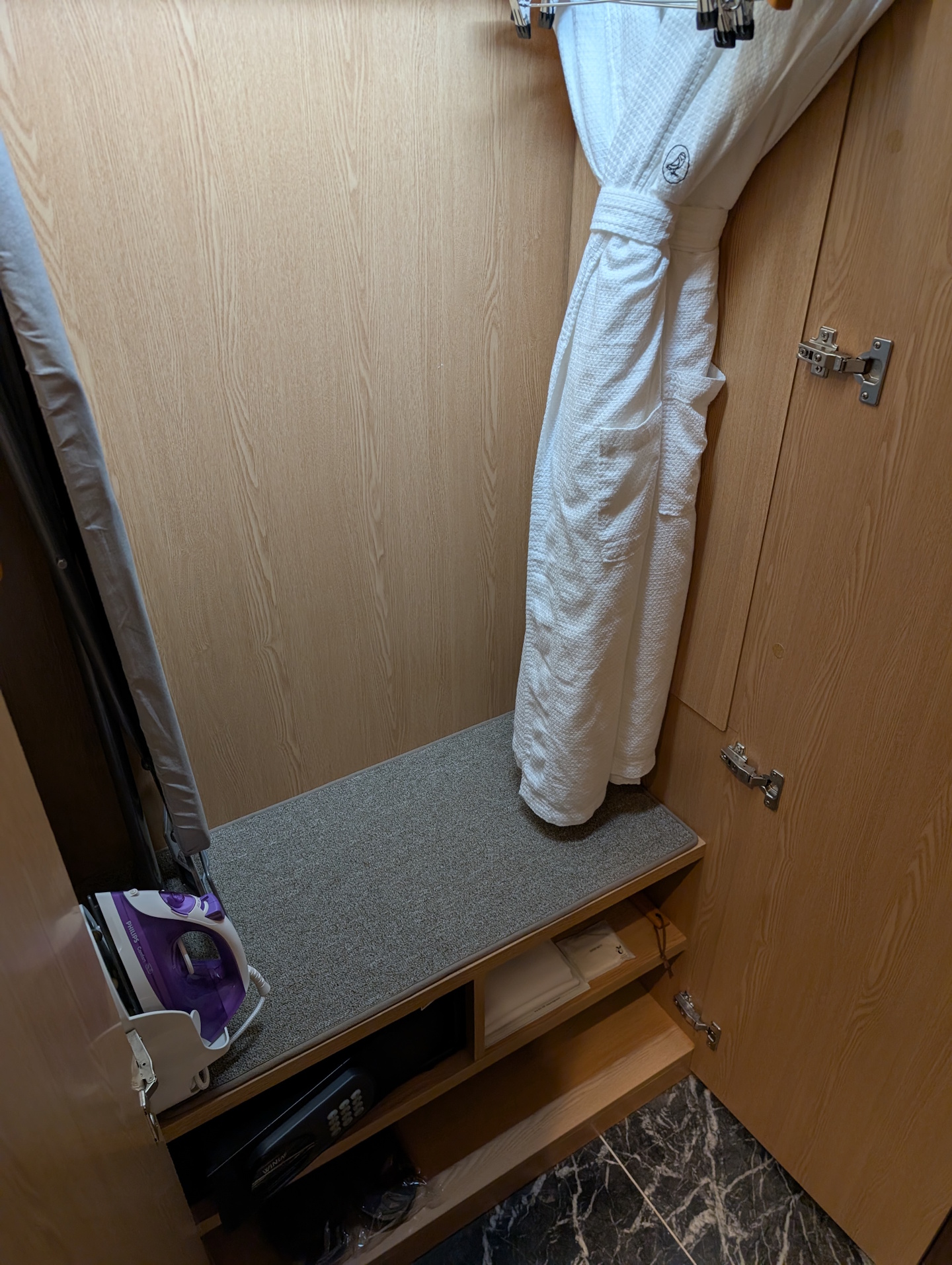 Während sich auf dem Zimmer eine Kapsel-Kaffeemaschine befand, fehlte hier ganz eindeutig ein Wasserkocher. Immerhin möchte man sich im „Land der Instantnudeln“ möglicherweise ebenjene Spezialität auch auf dem Zimmer zubereiten.