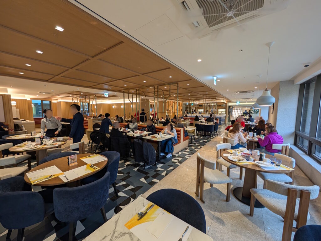 Das Frühstück wird, wie in Asien allgemein üblich, auch für Gäste mit Lounge-Zugang im Frühstückstestaurant des Hotels serviert, das sich auf der Galerie-Ebene oberhalb der Lobby befindet.