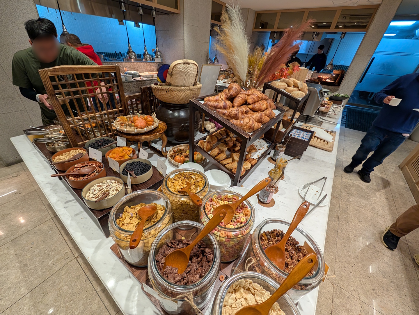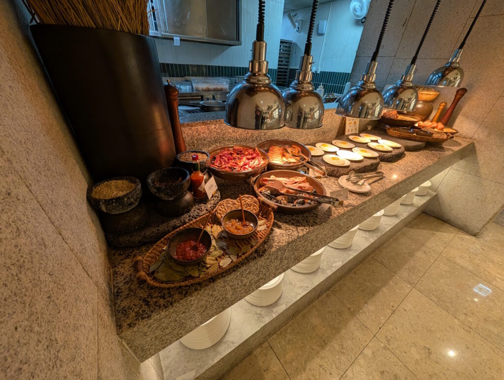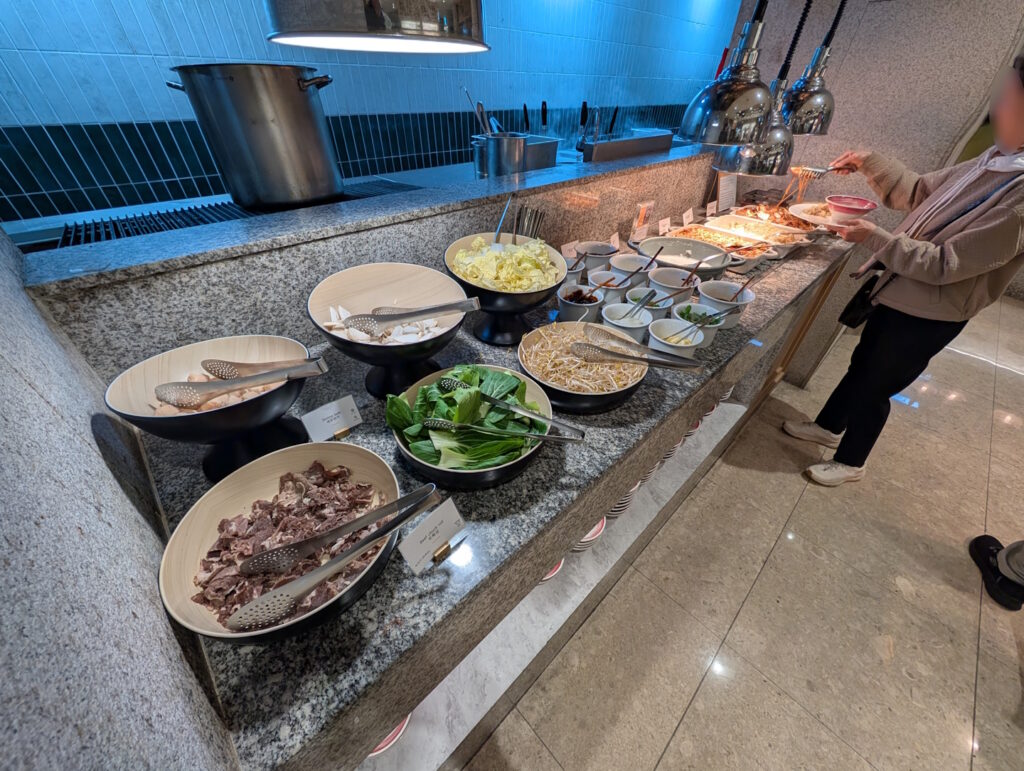 An dessen Umfang lässt sich hierbei überhaupt nichts aussetzen, gab es doch neben koreanischen Spezialitäten einer panasiatische (indisch, chinesisch) Auswahl auch typisch internationale und kontinentale Frühstücksgerichte, ergänzt durch Live-Cooking mit Eiergerichten und Nudelsuppen. Leider war hier die Qualität nicht immer ganz optimal, denn die warmen Gerichte waren überwiegend maximal lauwarm.