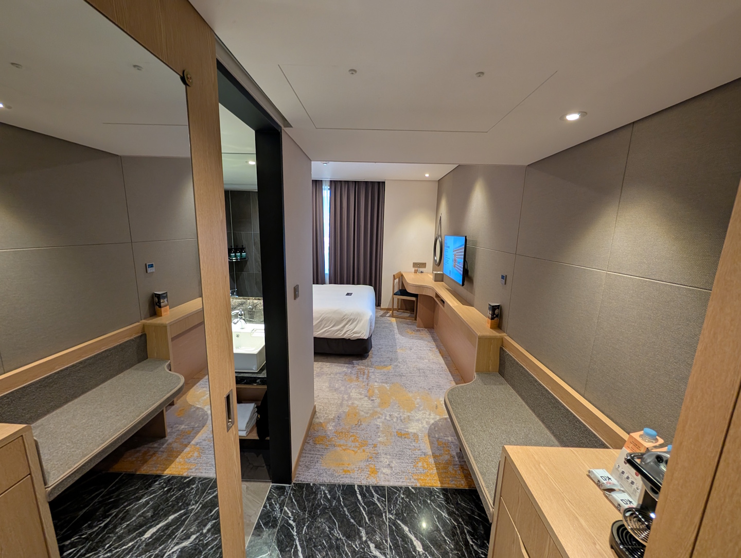In der Video-Roomtour zeige ich euch die Lobby und das 1 King Deluxe Mountain View-Zimmer mit Loungezugang des voco Seoul Myeongdong.