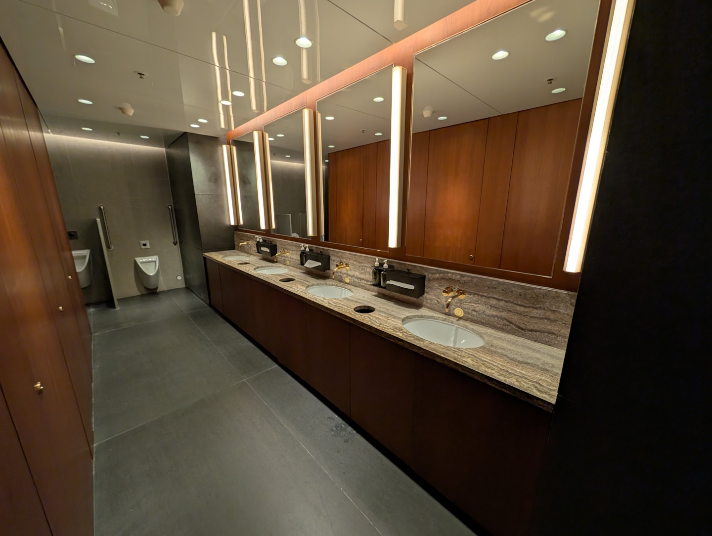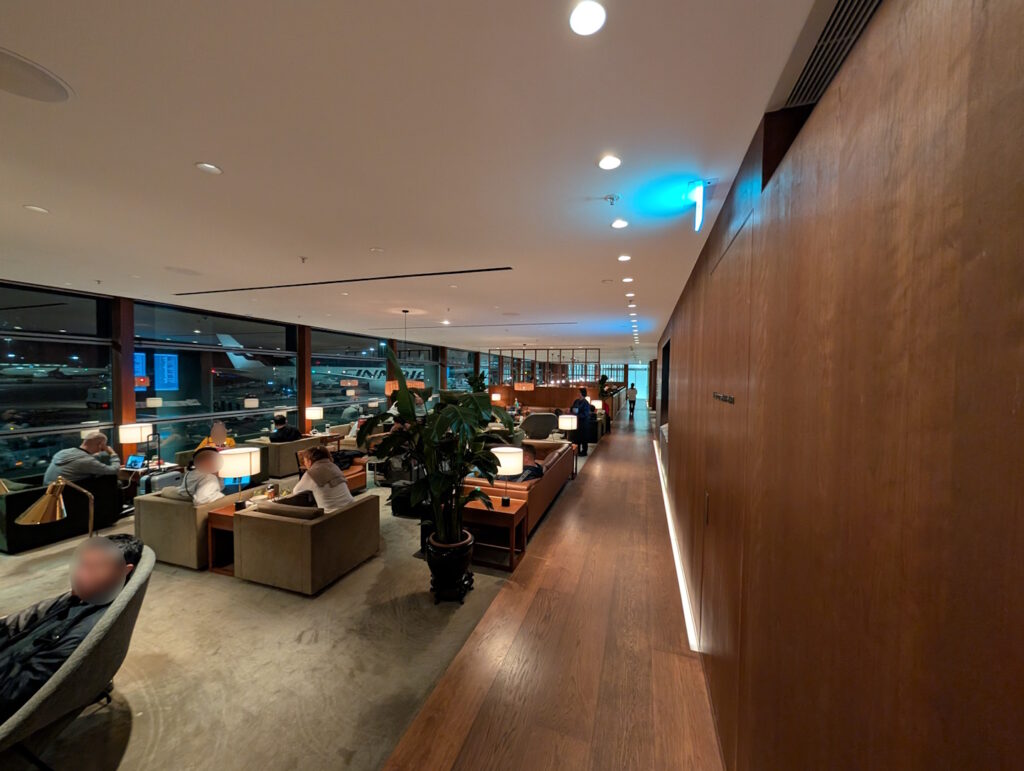 Dieser erschließt sich mir jedoch auch nicht so ganz, denn die paar Blicke, die ich hierhinein erhaschen konnten, zeigten die exakt gleiche Möblierung und keine besondere Ausstattungsmerkmale. Natürlich war hier weniger los, aber wenn man bedenkt, dass die hier zutrittsberechtigten Gäste auch eine der „vollwertigen“ First Class-Lounges besuchen könnten, die auch verpflegungstechnisch mehr bieten, verstehe ich nicht so richtig, wieso man das hier überhaupt braucht.