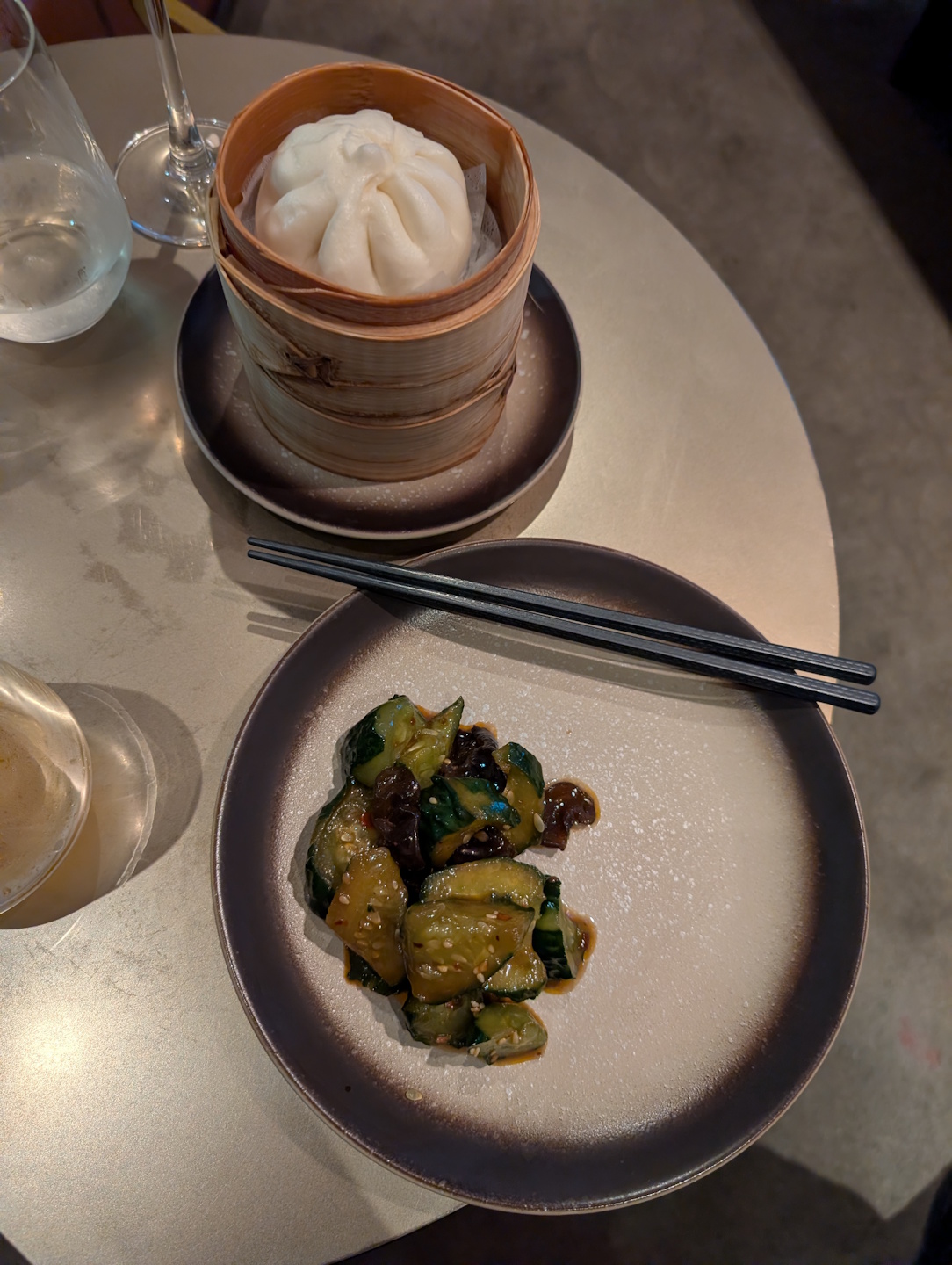 Zu bestimmten Zeiten wird darüber hinaus die Auswahl an der Nudelbar im versteckt ganz am Ende der Lounge liegenden Bereich „The Nook“ durch eine erweiterte Dim Sum-Auswahl ergänzt, von der Madame ebenfalls probiert hat. Qualitativ lag man hier in etwa auf dem gleichen Niveau wie einige Tage zuvor in der Cathay Pacific Lounge London.