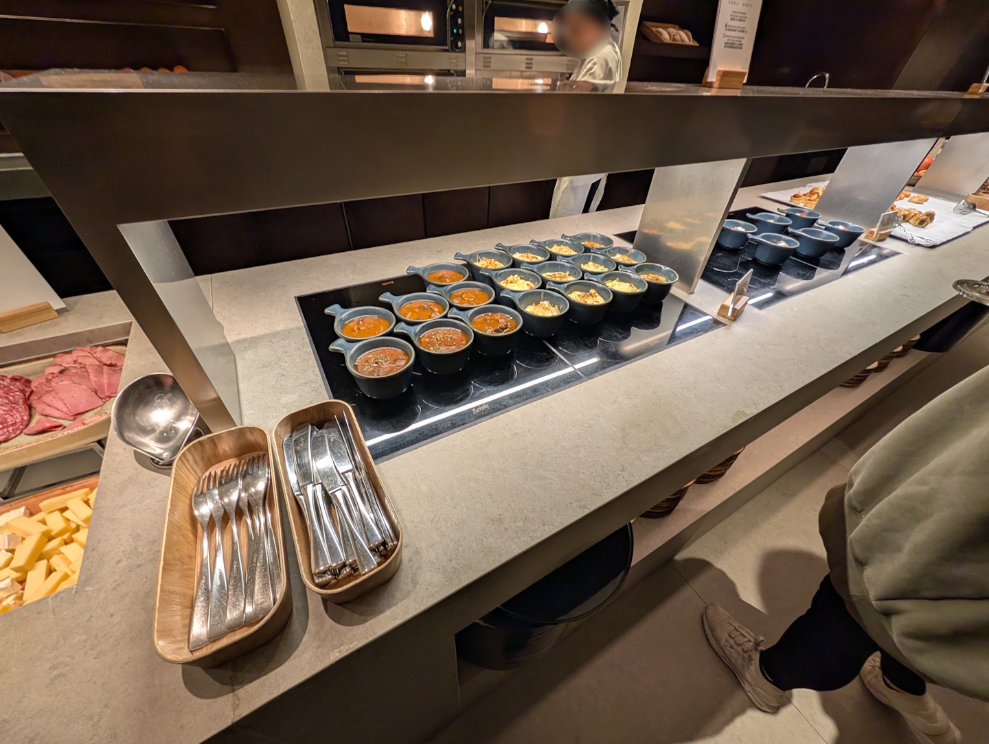 Wie bereits erwähnt, bieten beide Lounge-Teile unterschiedliche Verpflegungsmöglichkeiten. Da es aber jederzeit möglich ist, den Lounge-Teil zu wechseln, muss man sich nicht vorab entscheiden, in welchem Bereich man essen möchte.