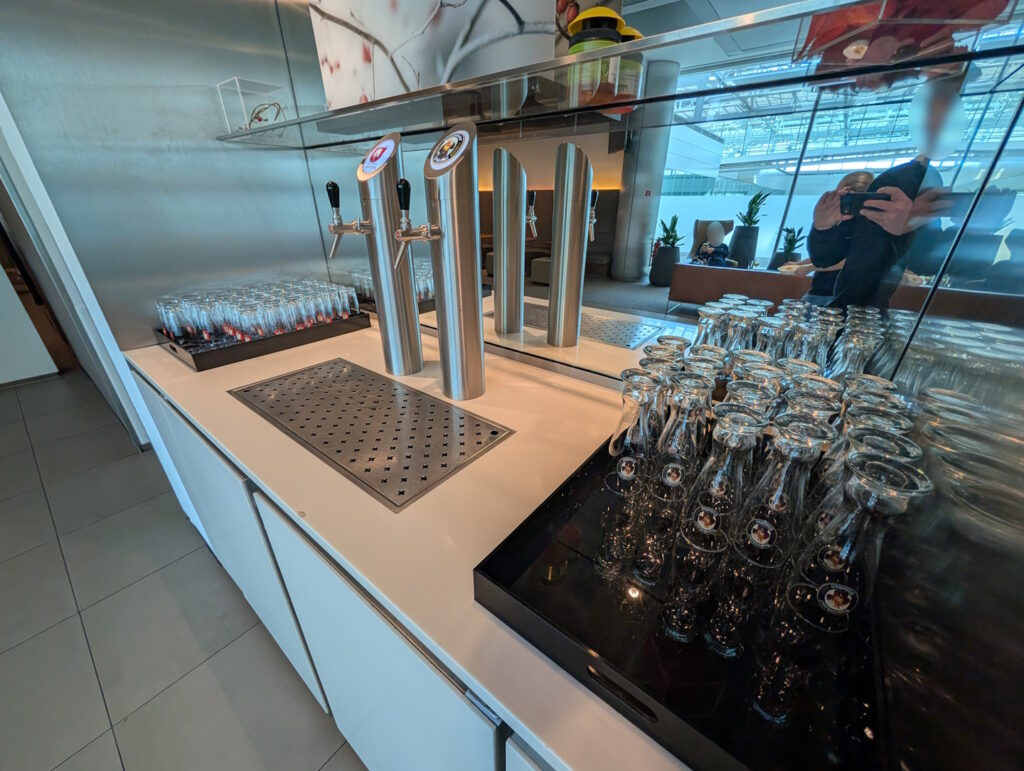 Während eine Auswahl an alkoholfreien und heißen Getränken am Getränke-Buffet bereitsteht, sind alkoholische Getränke aller Art (mit Ausnahme von Bier, hier gab es ein Münchner Hell der Brauerei Spaten und ein Weißbier aus dem Hause Paulaner) nur an der bedienten Bar erhältlich.