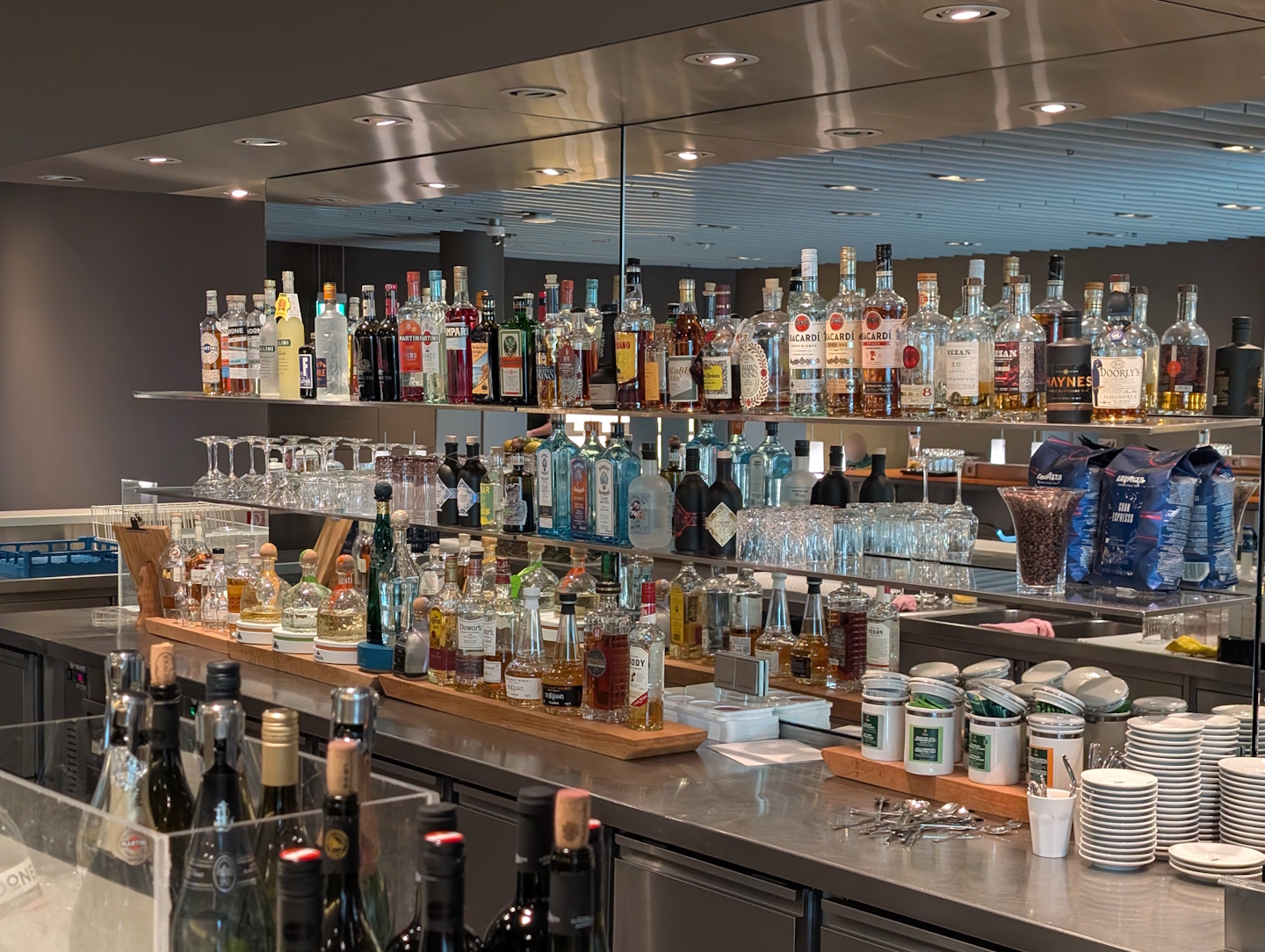 Ich bin grundsätzlich kein Fan bedienter Bars in Flughafen-Lounges, da ich gerne ein wenig experimentiere und neue Optionen ausprobiere – das ist an ebenjenen Bars, an denen man immer auf die Mithilfe des Personals angewiesen ist, aber immer ein wenig schwierig. So ist das Personal in aller Regel nicht wirklich geschult, kennt sich mit dem Sortiment kaum aus (Barkarten gibt es in der Regel, so auch hier, nicht) und ist häufig auch gar nicht anzutreffen. Genau das war auch hier das Problem, wenngleich ich sagen muss, dass die Auswahl an Spirituosen hinter der Bar ein wenig über die übliche Senator-Auswahl hinaus ging (das Sortiment an Patron-Tequila kannte ich so z.B. noch nicht, darunter offenbar auch eine Sorte, die im Handel knapp 200 Euro kostet).