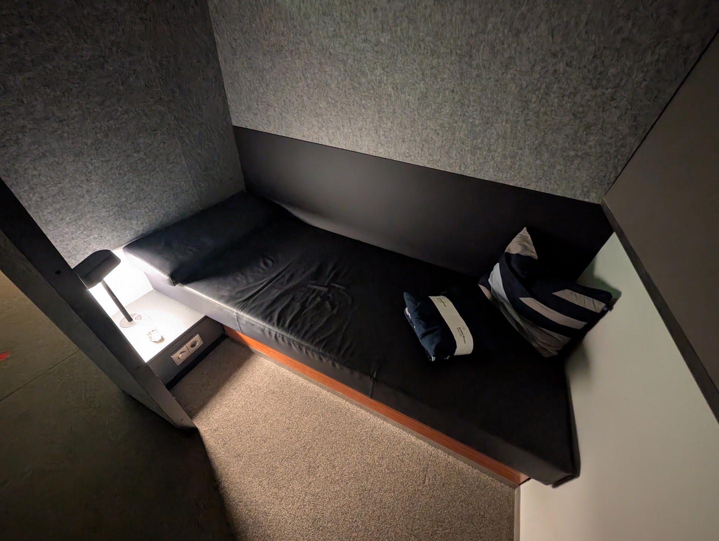 Direkt am Eingang befindet sich in der Lufthansa Senator Lounge München H auch noch ein kleiner, dunkler Ruheraum, der insgesamt vier Liegen zum Schlafen beinhaltet.