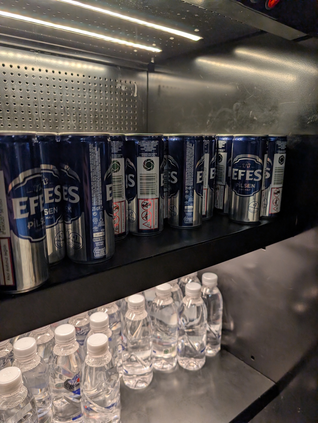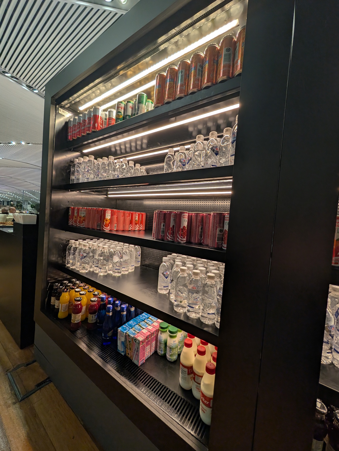 Getränketechnisch wurde aus mehreren offenen Kühlschränken über die Lounge verteilt eine Auswahl an Softdrinks aus Dosen angeboten.
