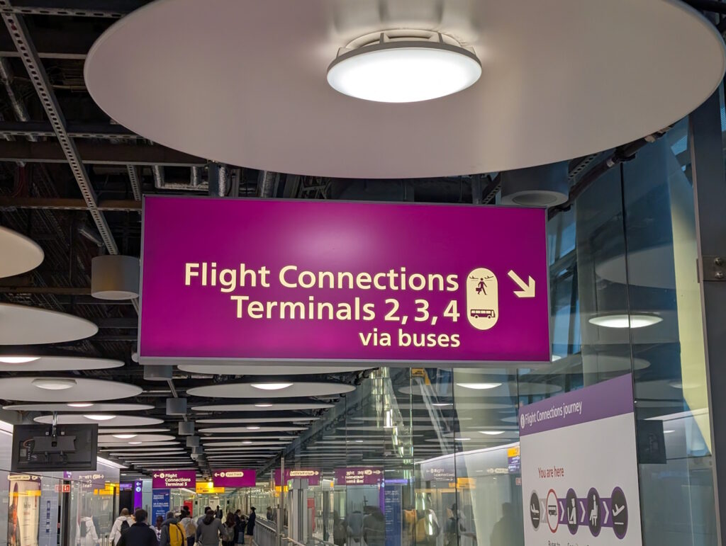 Da die online verfügbaren Beschreibungen dieses Transfers (insbesondere auch diejenigen auf der offiziellen Heathrow-Website) nicht besonders klar sind, habe ich mich dazu entschieden, diesen Guide zu verfassen und das Prozedere hoffentlich verständlicher zu beschreiben. Da ich diesen Terminalwechsel bislang nur ein Mal (und zwar in die Richtung T5 -> T3) selbst mitgemacht habe, gibt es auch nur die Beschreibung dieser Richtung. Eine elektronische Einreisegenehmigung (ETA) ist für dieses Prozedere im Übrigen (derzeit) nicht erforderlich, da man nicht ins Vereinigte Königreich einreist – sollte aber die Regelung wieder aufgenommen werden, dass auch Transitpassagiere eine ETA beantragen müssen, wäre dies auch hierfür notwendig.